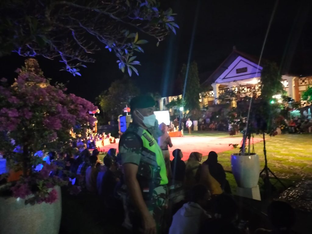 Kanalbhayangkara.com – Kabupaten Klungkung Bali | Danramil 1610-01/Klungkung menghadiri kegiatan pagelaran bersama Sanggar Seni Kayonan dan Perkumpulan 8 Komunitas Sanggar Seni dari Daerah Purwakarta Jawa Barat, Sabtu (02/07/22) malam.
