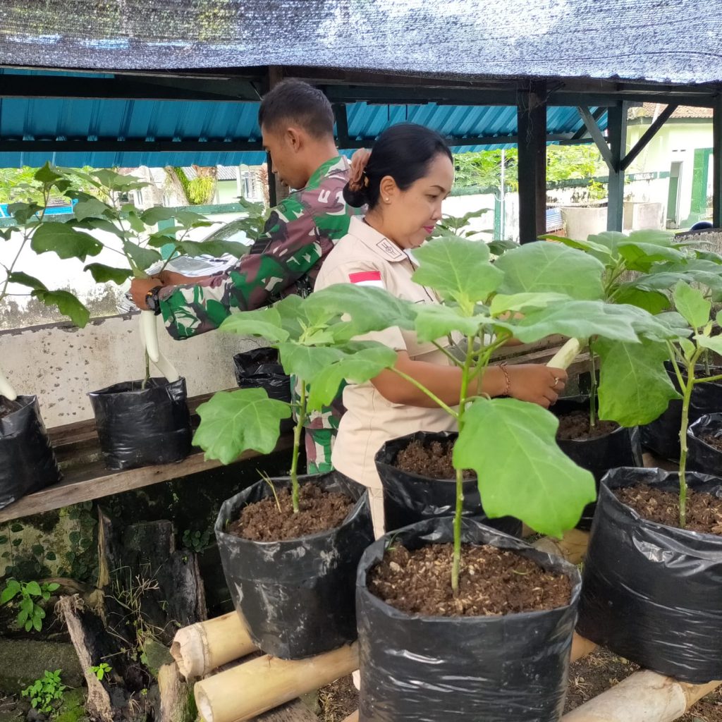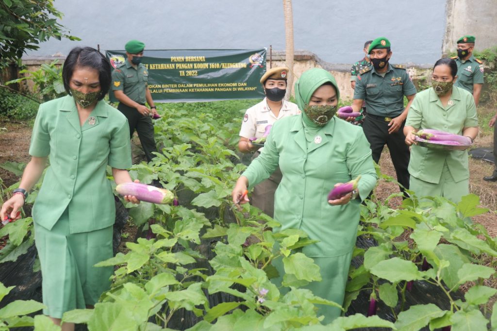 Kanalbhayangkara.com – Klungkung, Dandim 1610/Klungkung Letkol Inf Suhendar Suryaningrat, SH. M.Si dampingi Ketua Persit KCK Cabang XXXIII Ny Indri Suhendar Suryaningrat bersama anggotanya melakukan panen bersama di Demplot ketahanan pangan yang ada di Makodim Klungkung,