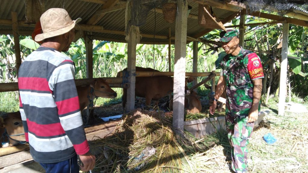 Ya ini sudah menjadi tugas dan tanggung jawab sebagai Babinsa. Setiap hari dirinya melaksanakan pemantauan melalui sambang ke wilayah binaannya, seperti saat ini dirinya melaksanakan pengecekan hewan ternak warga.