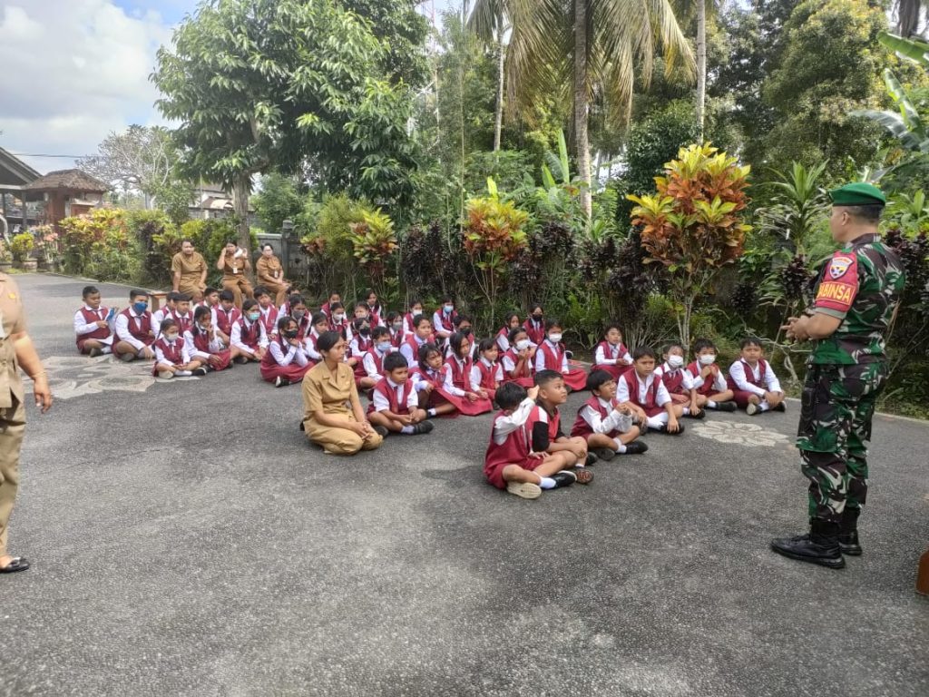 Kanalbhayangkara.com – Klungkung,– Dalam rangka mengantisipasi terjadinya tindak kejahatan, khususnya bagi anak-anak sekolah di wilayah binaannya, Babinsa desa Tihingan Serda I Putu Agustana pagi ini menyambangi SDN 3 Tihingan, Senin (05/09/22) pagi.