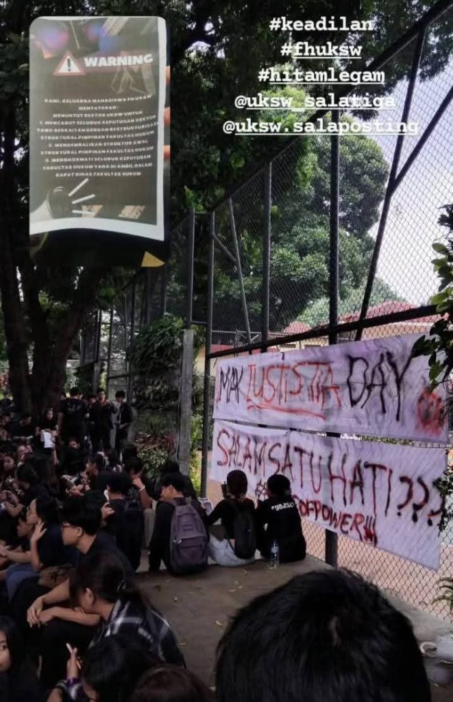 Sebelumnya, Fakultas Hukum telah melakukan aksi protes menolak pemberhentian mendadak Dekan mereka, Prof. Dr. Umbu Rauta, Wakil Dekan, dan para pejabat struktural lain oleh Rektor UKSW. Aksi tersebut diwarnai tudingan bahwa Rektorat telah bertindak sewenang-wenang dan menyalahgunakan kekuasaan.